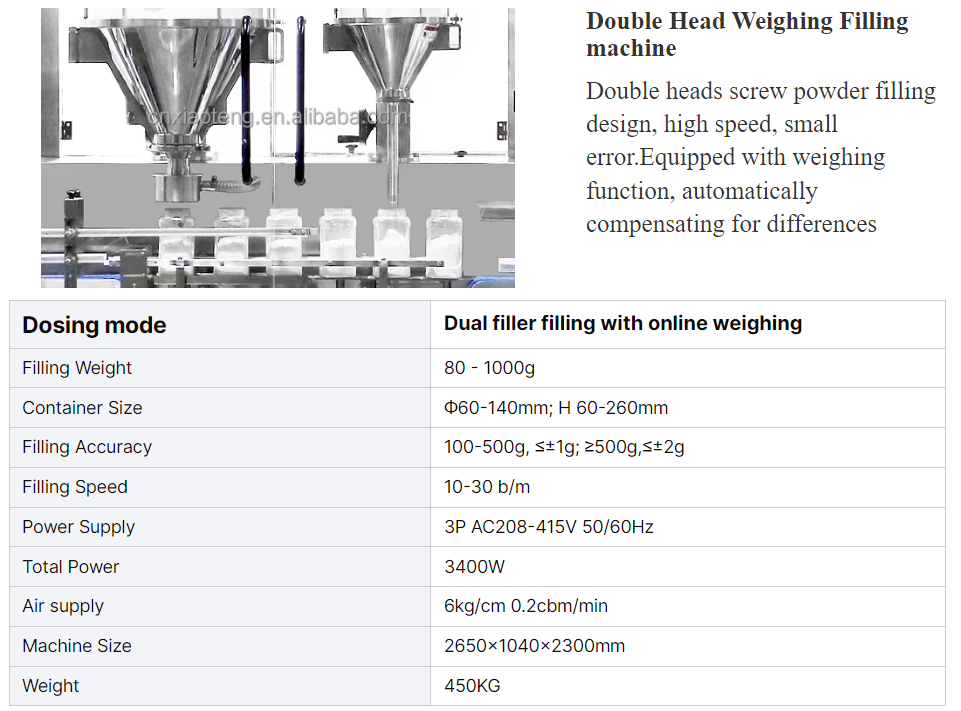 Double Heads Weighing Type Bottling/Canning Powder Automatic Packing Production Line