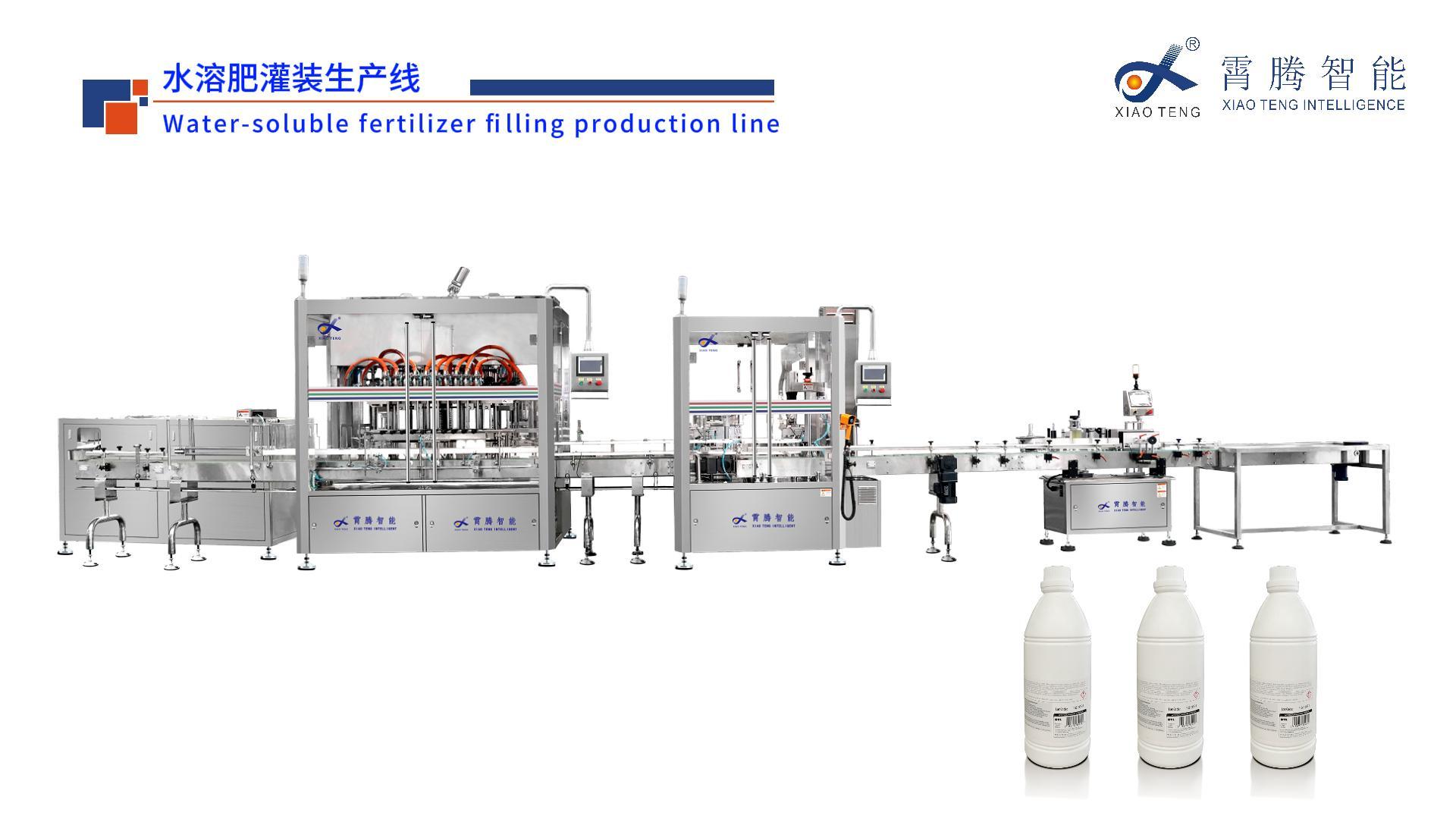 Our water-soluble fertilizer filling production line is composed of four types of equipment: Bottle unscrambler Multi-head linear filling machine,Rotary Capping Machine nd Labeling Machine is suitable for a variety of water-soluble fertilizer packaging line.