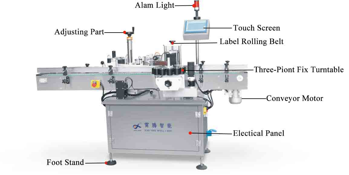 Applicable to label a whole curved surface or half curved surface on rotundities, food,agrochemical and other light industries,it can be used solerly or connect;Using of special bottle-distributing mechanism to avoid the materials being scratched and with which the machine can be adjusted and located quickly to label bottles with any diameter without replacing accessories.