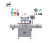 XT-CGJ fixed type screw capping machine adopts advanced technology, high grade stainless steel, compact structure, beautiful outlook, convenient maintenance, widely used in daily products, pharmaceutical, health care products, food industry, etc. Applicable to various kinds of containers(round bottle, flat bottle, square bottle)cap loading and capping. The bottle which already after filling are conveyed by conveyor and bottle separating wheel to the capping position, the cap is elevated from the hopper to cap loading tunnel(the reverse cap will be rejected),the cap will be dropped from the tunnel and then load on the bottle mouth; then, the container will go into the grasp bottle mechanism, the bottle body will be fixed tightly by two belts, at the same time, the three capping wheel of the cap screwing mechanism will screw the cap for three times, the after capping bottle will separate from the belt and then conveyed to next procedure.