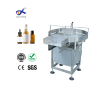 This bottle unscrambler is a dynamic worktable with frequency control. Its procedure: put bottles onto round turntable, then turntable rotate to poke bottles onto conveying belt, filling is began when bottles are sent into filling machine.